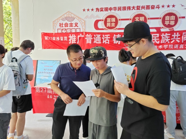 推普周伊始,我校语言文字工作委员会制定了详细的推普周活动方案,并通过悬挂横幅、电子屏滚动播放、发放推普宣传册等方式在校内营造推广普通话、促进语言文字规范化的良好氛围。