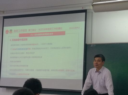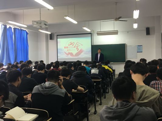 朱书记从我校学习贯彻全国两会精神入手,进而介绍了今年全国两会的概况,解读了政府工作报告的主要内容,引导学生学习理解宪法修正案。整堂授课既站位高又接地气,从国家的精准扶贫到我校的贫困生帮扶政策,从中美贸易战、中国制造2025到学生的机电、电气专业的学习,从中国的扩大开放到我校的出国及留学生工作等,视野宽广又联系实际,与学生积极互动,循循善诱。同时又注重价值引领,既有理论高度又有实践深度,让家国情怀和担当意识扎根学生心灵。学生普遍反映,朱书记的课很耐听,内容充实、见解深刻、贴近生活,提升了对党和国家路线方针政策的理解,表示“以后要更加拥护党的领导,对党组织做出的决定,坚定的执行。”