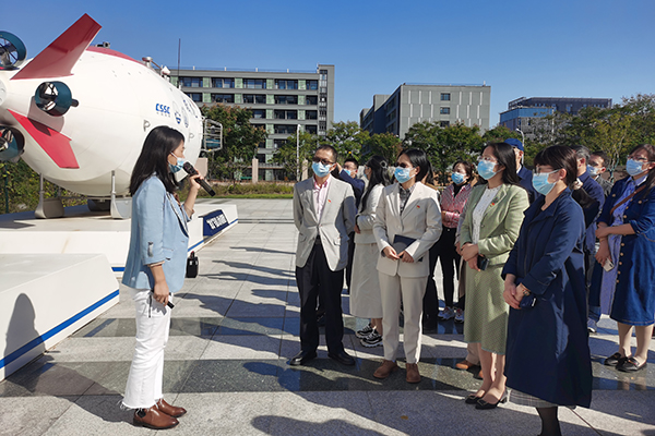 10月18日下午,杨雪琴副书记带领马克思主义学院全体教师赴中国船舶科学研究中心无锡深海技术科学太湖实验室参观学习。研究中心党委委员、纪委书记甘海燕、党群处副处长吴波等对我校一行的到来表示热烈欢迎,并陪同参观了深海潜水器模型广场等处。