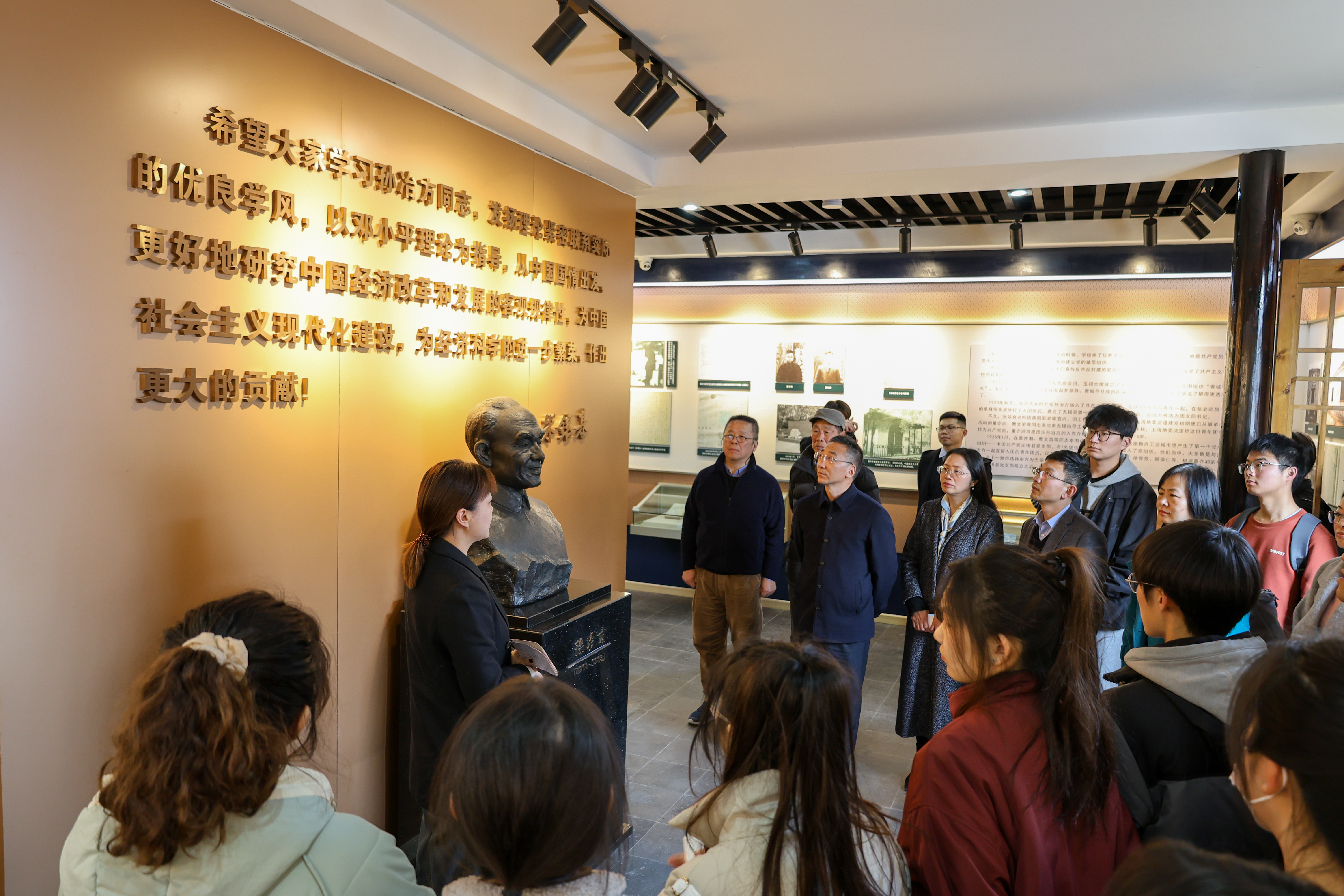 在孙冶方纪念馆,大家在讲解员的细致介绍中,依次走过以“探求真理、投身革命”“学成回国、历经艰难”“投笔从戎、转战三省”“经济工作、真知灼见”“老骥伏枥、鞠躬尽瘁”为主题的五个展厅,详细了解了孙冶方追随真理、不懈奋斗的一生。孙冶方出生于无锡玉祁镇,1924年加入中国共产党,是无锡历史上第一个支部书记,后来成长为马克思主义经济学家,为党和国家事业发展作出了重要贡献。参观结束后,龚方红表示,师生们要学习孙冶方坚持真理、对党忠诚的高尚品质,求真务实、严谨精深的学术精神,淡泊名利、朴实无华的人格风貌,悉心执教,刻苦求学,在新时代奋发有为,为推进教育强国、民族复兴添砖加瓦。