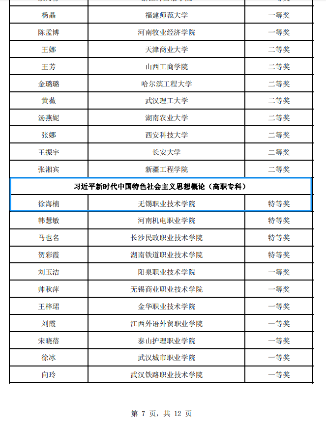 近日,教育部公布第三届全国高校思想政治理论课教学展示活动评选结果。我院徐海楠老师荣获习近平新时代中国特色社会主义思想概论(高职专科)组特等奖。