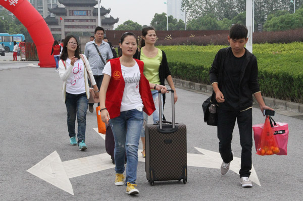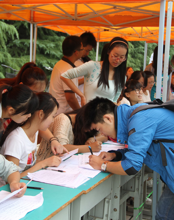 9月7日是我校2013级新生报到的日子。一大早,来自新疆石河子的张景宣就来到机械技术学院新生接待处办理入学手续,这个20岁的小伙子提着行李,独自坐了两天两夜的火车来到无锡。无独有偶,同为数控技术专业新生的刘伟也来自新疆,为了赶上报到日期,他