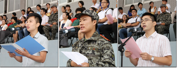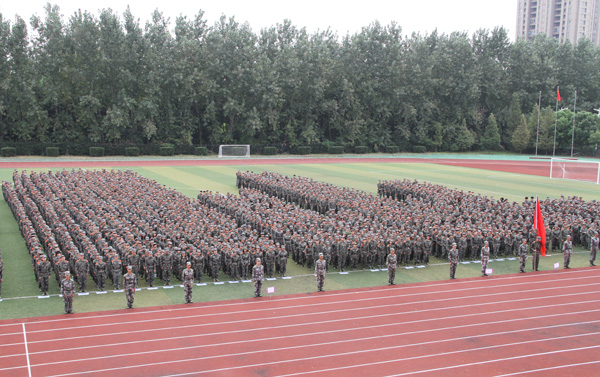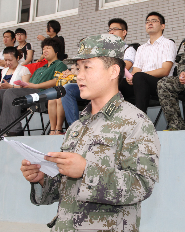 承训部队领导在动员讲话中希望2014级同学们在军训期间发扬不怕吃苦、不怕牺牲的精神,用坚忍不拔的勇气和顽强的毅力克服困难,认真训练,在强健体魄、磨练意志的同时,接受爱国主义和国防教育的洗礼。(魏艳)