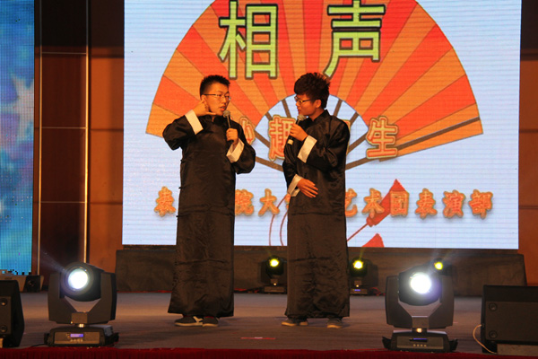 晚会以一曲洋溢着青春气息的《小苹果》舞曲中拉开序幕,迅速点燃现场气氛。当晚节目内容丰富、形式多样,为到场观众呈现了一场视听盛宴,小品相声幽默逗趣,歌曲联唱深情文艺,现代舞精彩绝伦,在江苏省大学生第四届艺术展演中获奖的舞蹈《在那生长的地方》和男生小合唱《月之故乡》更是收获了众多掌声和赞誉。(石淑丹朱献清王卫东)