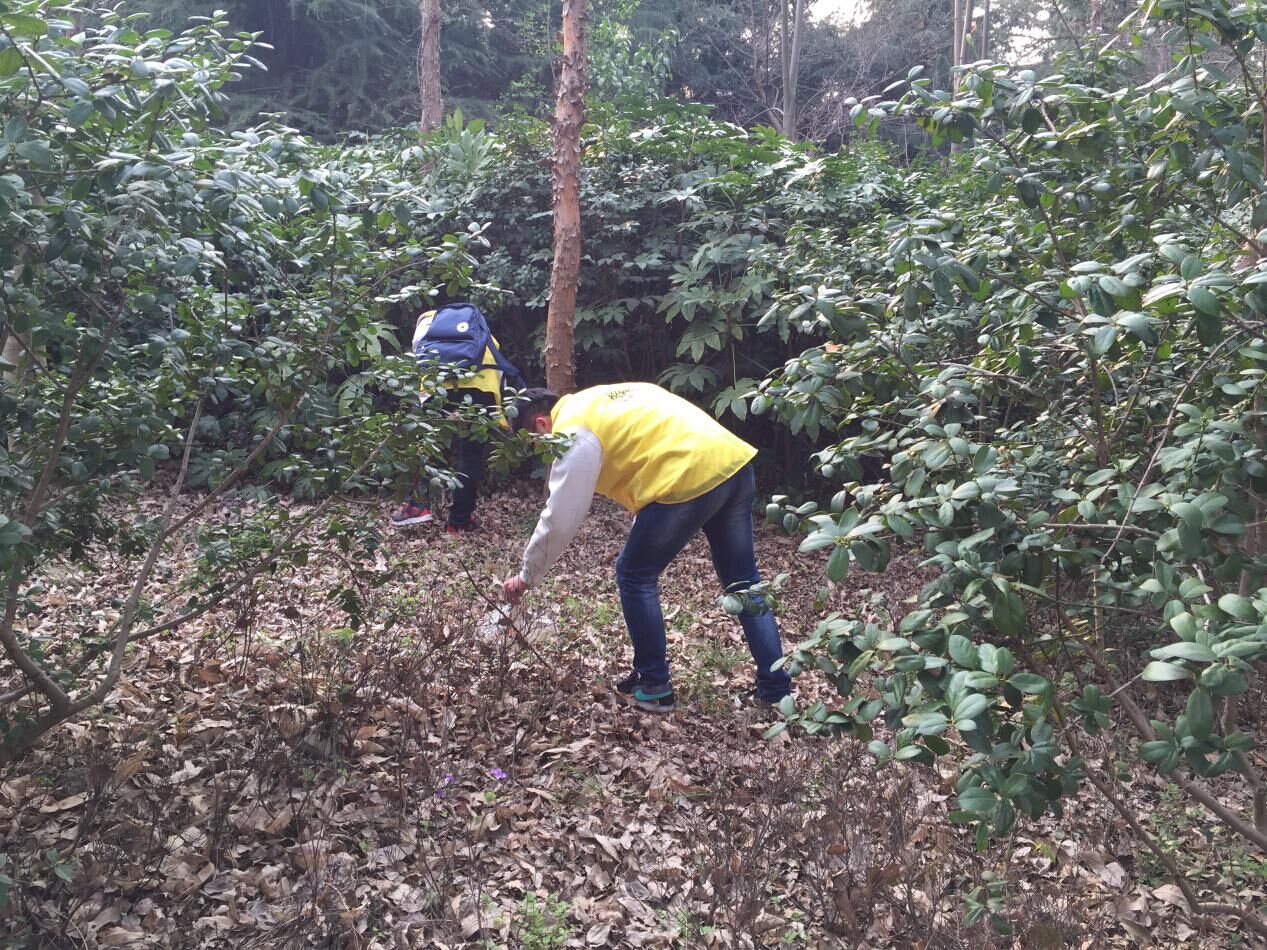 到达长广溪公园,志愿者首先进行分组并分配了垃圾袋。志愿者们身穿亮色黄马甲沿着不同的路线行进,穿梭在山林之中、石缝之间,弯腰地捡起随意丢弃的垃圾。有的志愿者队在树林捡拾塑料瓶,有的志愿者对绿化带的果皮和纸屑进行清理,有的志愿者在捡拾垃圾的过程中与游客互动来宣传环保知识。