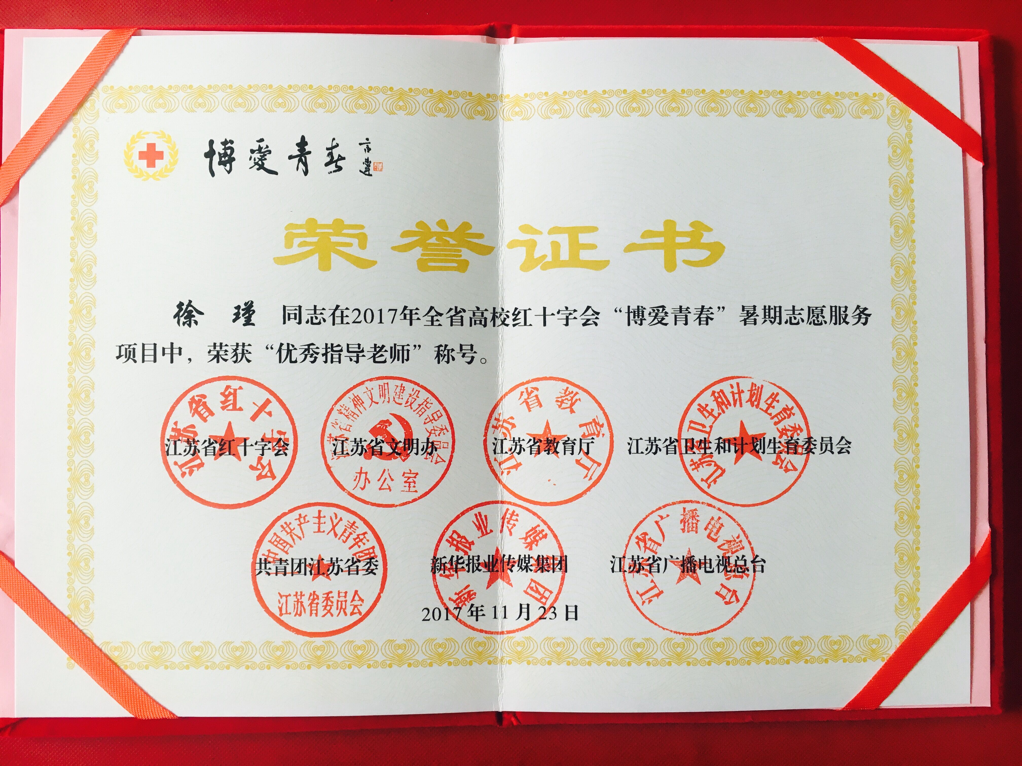 315日无锡市学校红十字会工作会议在市民中心召开,我校红十字会会长华坚副院长出席了会议。会议通报了江苏省第五批红十字示范学校评选结果,我校从全省参与申报的近百所学校中脱颖而出,成为本批次无锡市唯一获此殊荣的高校。无锡市红十字会对我校进行了表彰授牌。会议还对2017年全省高校红十字会“博爱青春”暑期志愿服务项目进行了表彰,我校物联网学院徐瑾老师获“优秀指导老师”称号。