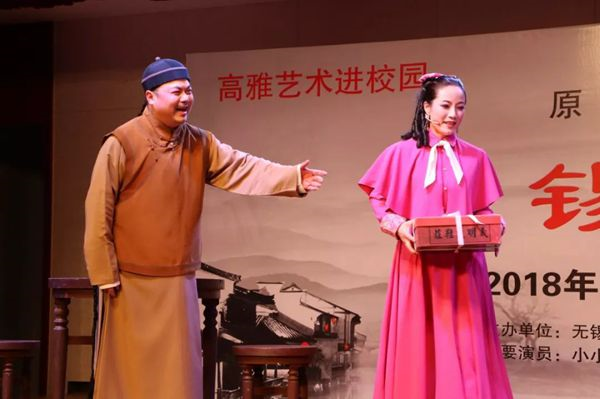 为丰富大学生活,传播弘扬校园文化,12月18日晚,学校团委公共艺术教育中心举行了“高雅艺术进校园”活动。由上海市“曙光奖”得主卢昂导演的无锡剧院大型原创锡剧《锡商》在青春剧场拉开帷幕,上海市白玉兰奖、江苏省茉莉花奖得主小小王彬彬率领潘华、蔡瑜、潘佩琼等一众主演为我校师生带来一场传统文化大餐。