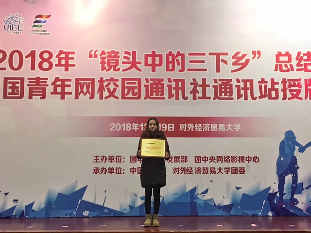 2018年12月19日由团中央青年发展部、团中央网络影视中心主办,中国青年网、对外经济贸易大学团委承办的中国青年网校园通讯社高校通讯站授牌仪式在对外经济贸易大学图书馆报告厅举行。