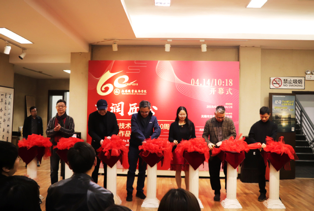 4月14日,庆祝我校建校60周年“艺润匠心”师生美术作品展在无锡美术馆(无锡市书画院)开幕,无锡书画院名誉院长王洋教授、无锡美术馆副馆长赖辉教授、无锡博物院研究院陈瑞农教授、无锡邮政局局长陈东、太湖学院艺术学院院长李方明教授、太湖学院艺术学院谭小建副教授和我校杨雪琴副校长出席开幕式并一同剪彩。