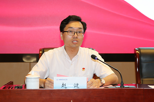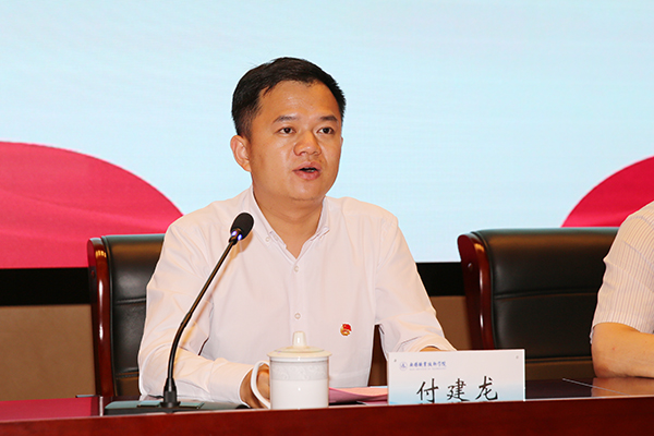 团省委高校部部长付建龙在讲话对我校共青团在思想引领阵地平台建设、第二课堂成绩单建设等方面取得的成绩给予肯定,希望学校共青团深化立德树人要求,强化基层组织建设,细化成长成才服务,并鼓励广大青年通过“青春留苏”计划感知江苏、展翅江苏、扎根江苏。