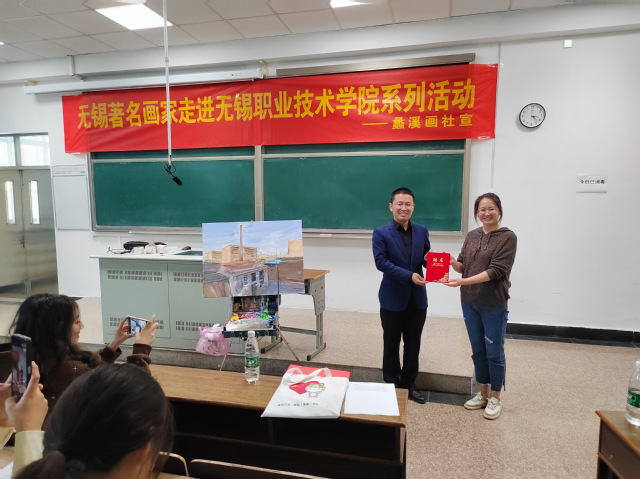 为了丰富社团活动,拓展学生艺术视野,10月25日下午,由蠡溪画社主办的“书画名家进校园”活动在至善楼成功举行。活动中有幸邀请到无锡书画院著名油画家李建鹏老师,为我校师生进行艺术鉴赏与交流,出席活动的有校团委郑月圆副书记、蠡溪画社指导教师曹亮老师,以及蠡溪画社全体成员和对绘画有兴趣的同学。