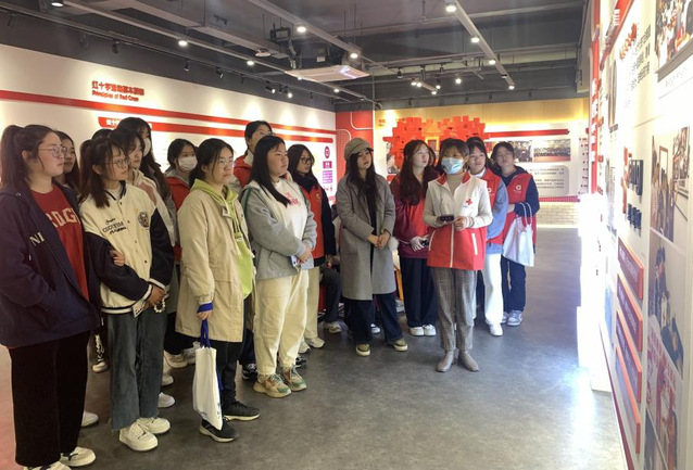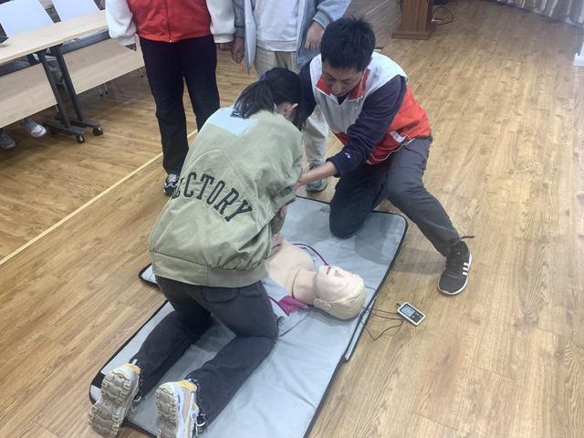 在讲解员的带领下,同学们参观了无锡市梁溪区红十字会展馆,深入了解红十字会运动,学习应急避险知识理论知识,还体验了爱心签名打卡和模拟逃生。参观之余,50名同学参加了应急救护培训,以“理论学习+实践操作”的形式,学习体验了心肺复苏、自动除颤、气道异物梗阻、止血包扎急救等急救知识。