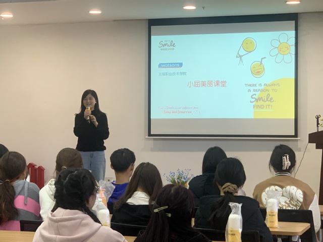 此次活动以屈臣氏专业美妆指导老师为同学们讲解日常生活中的化妆知识为主,三名彩妆师根据美妆指导老师的讲解同步进行化妆技巧展示,以便同学们更为直观的感受化妆的魅力,穿插的有奖互动问答环节引起了同学们的浓厚兴趣。