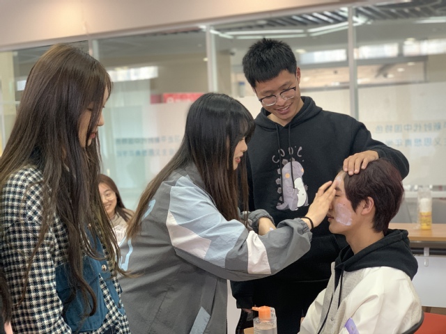 讲解结束后,屈臣氏团队用组队化妆比赛的方式将活动推到了高潮。三组同学,十人为一组进行比拼,在各组指导老师的带领下,以接力化妆的方式完成对模特的妆容设计和展示,同学们纷纷表示受益匪浅。