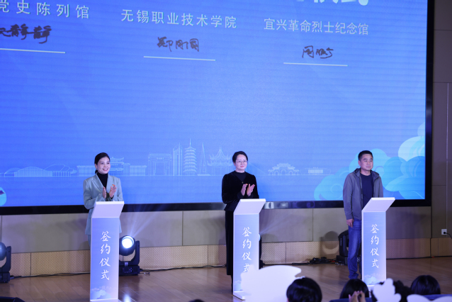活动现场,我校与宜兴党史陈列馆、宜兴革命烈士纪念馆签订红色资源校地共建协议,接受了宜兴档案史志馆向我校习近平新时代中国特色社会主义思想青年学社捐赠的红色读物,并聘请“理润陶都”新思想宣讲团成员为学校“青年学习导师”。