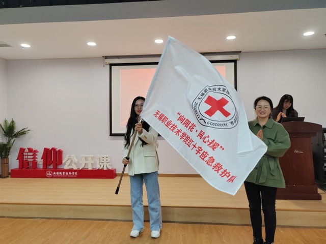 仪式上,校团委副书记郑月圆和魏巍主任共同为我校红十字应急救护队揭牌、授旗。郑书记对救护队提出了几点要求:一是要坚持以人为本,树立安全意识。始终把师生的生命安全放在首位;二是要勇于担当责任,关键时刻敢于冲锋在前,为师生提供及时有效的救助;三是要注重实践与培训,定期开展培训和演练,苦练基本功,不断提高队伍的专业素质和实战能力。