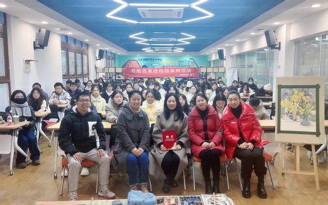 12月19日下午,校团委在大学生活动中心青智库举办了“书画名家进校园”系列活动,活动邀请了江南大学教授、著名画家李春艳,校团委副书记郑月圆、社团管理部部长徐娜娜、蠡溪画社指导教师曹亮和百余名师生绘画爱好者参加了本次活动。