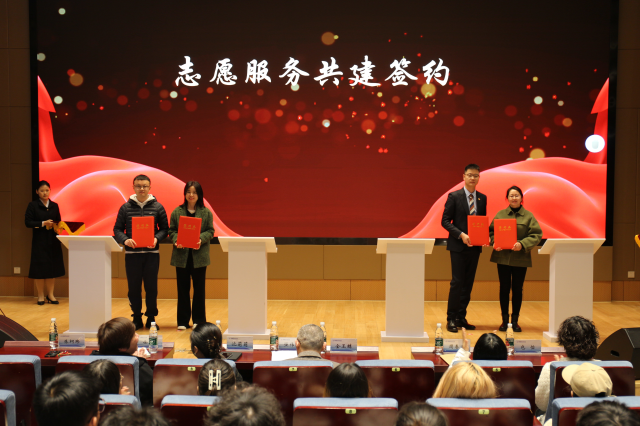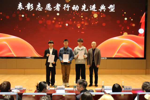 活动现场表彰了2023年度学校优秀志愿者,优秀志愿服务项目和优秀志愿组织;财经学院郑文彧老师和向日葵义工站李沛泽同学做了交流发言;学校团委与无锡地铁集团,无锡市人民医院,无锡市残联,江苏省击剑协会进行志愿服务共建签约;活动最后,强伟纲副校长发表讲话,他对各共建单位给我校学生提供宝贵的社会实践和志愿服务平台表示感谢,并对学校提升志愿服务工作水平提出三点要求:一是要学深志愿服务精神,强化思想引领;二是要落实志愿服务行动,践行挺膺担当;三是要丰富平台载体,树立榜样示范。