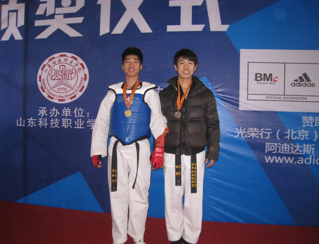 全国大学生跆拳道联赛“光荣行、阿迪达斯杯”华东赛区在山东科技职业技术学院举行,我院派出4名队员参赛,由