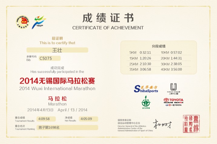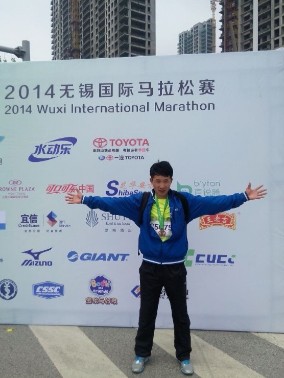4月13日上午,江苏省唯一的全程国际马拉松赛——2014无锡国际马拉松赛在太湖大道与隐秀路交界处鸣枪起跑。此次比赛赛道为环形设计,途径鼋头渚、十里芳径、江南大学等无锡著名自然、人文景观,也获赞国内最美马拉松赛道之一,吸引了国内外近两万人参加。比赛分全程马拉松、半程马拉松、迷你马拉松三类,经2个多小时角逐,男女全程冠军均被埃塞俄比亚选手获得,中国选手此次比赛亦有抢眼表现,斩获男子第三名及女子二、三名奖牌。我校田径队队员,汽修51171班的王壮同学参加了赛道总程为42.195公里全程马拉松,并以4小时05分09秒的净成绩顺利完成比赛。