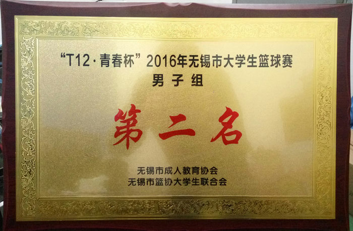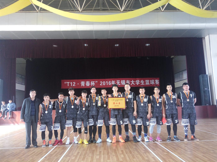 12月8日-11日,历时4天的“T12·青春杯”2016年无锡市大学生篮球赛在无锡城市职业技术学院北校区体育馆落幕。本次比赛有全市12所高校,11支男队和4支女队通过预赛阶段的分组循环和决赛阶段的交叉比赛,我校男子篮球队在体育部主任华宝元、教练员时国兴、刘超的带领下,在小组赛和交叉赛中奋力拼搏、连战连捷,最终在决赛中惜败太湖学院,获得男子组第二名的成绩,无锡太湖学院和江南大学代表队分获男女队冠军。