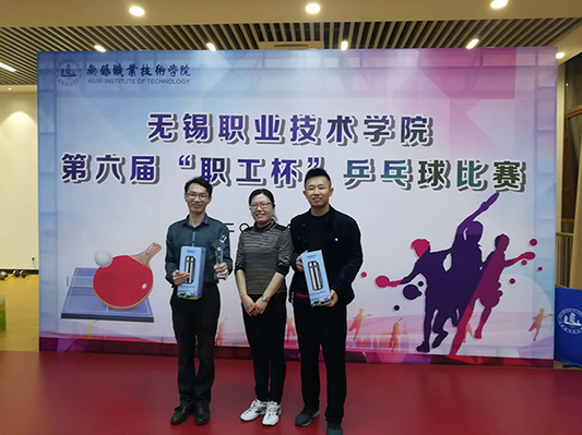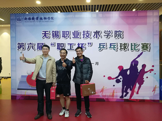 由校工会主办、体育部协办的第六届“职工杯”乒乓球比赛于11月22日-29日在太湖校区进行。在各部门领导大力支持、广大师生员工的积极参与下,本届比赛共有来自校领导、机关党工委、各党总支(直属党支部)的16支代表队近百名乒乓球爱好者参赛。比赛分两阶段进行,第一阶段为分组单循环赛,根据积分排名,小组前两名出线。第二阶段为淘汰赛,捉对厮杀决出具体名次。比赛中各队教练斗智斗勇、巧妙布阵,全体球员努力拼搏、奋勇争先。各队攻防有序,每球必争,拉球、吊球、抢拍、扣杀,打得难解难分,现场掌声与喝彩声此起彼伏,比赛精彩纷呈,高潮迭起,球员们精湛的球技赢得了现场观众的赞誉,淋漓尽致的展现了乒乓球运动的魅力。
