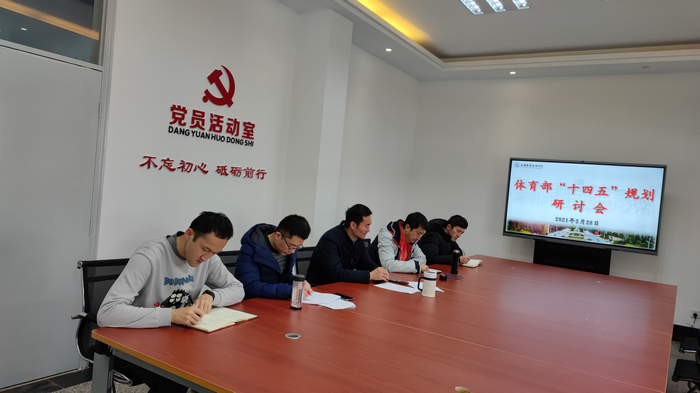 寒假期间,体育部领导班子就部门“十四五”规划指导思想和框架做了梳理,现阶段需进一步详细讨论编制工作的具体细节和组织分工。吴斌书记指出,“十四五”不仅是我国实现“两个一百年”宏伟目标的历史交汇期,也是我校“双高”建设验收和再起步的关键时间点,同时还是学校提质升级、进入高质量发展的关键阶段。规划编制工作须坚持“双高导向、特色发展、提质升级、幸福共享”16字方针,立足全局、突出重点、应对挑战、抢抓机遇,努力建成领军全国、国际知名的智能制造特色校和高水平职业技术大学。根据学校“治理能力提升年”相关要求,体育部结合自身特点、明确发展目标,科学制定部门“十四五”规划。