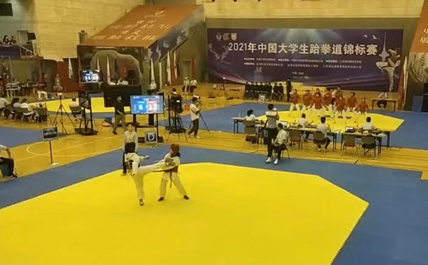7月20日至26日,中国大学生跆拳道锦标赛在盐城师范学院体育馆举行,我校管理学院董文静同学获得女子47公斤级亚军,控制技术学院张泓溢同学获男子74公斤级第五名。
