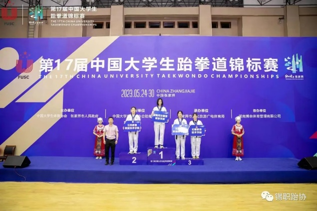 2023年5月24日—30日,由中国大学生体育协会主办的第17届中国大学生跆拳道锦标赛在湖南省张家界市一中体育馆举行。本次比赛吸引了全国196支高校队伍,共计1500多人参加。我校跆拳道协会由王坤指导老师担任教练,共选派6名运动员参加此次比赛。