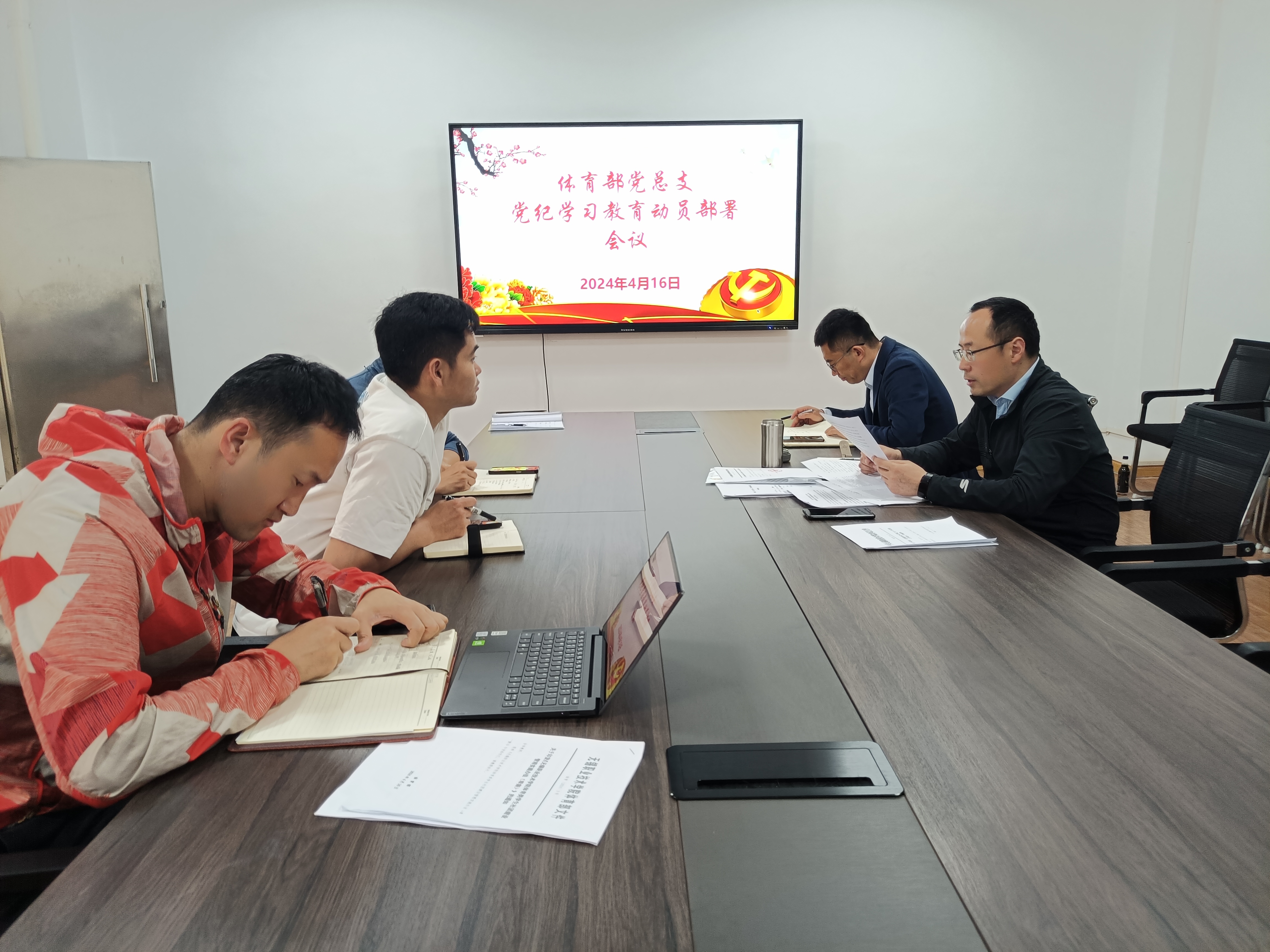 4月16日上午,体育部党总支在体育馆二楼会议室召开党纪学习教育动员部署会议,党总支委员、各部门负责人、党支部书记参加会议,会议由党总支书记宋静辉主持。