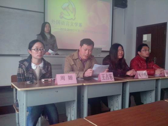 3月12日下午3时,外国语言文学系系党校开班典礼隆重举行。外国语言文学系党总支书记王占东老师、党政秘书王小梅老师、学工办主任周嫄老师和辅导员刘文庆老师参加了此次开班典礼。