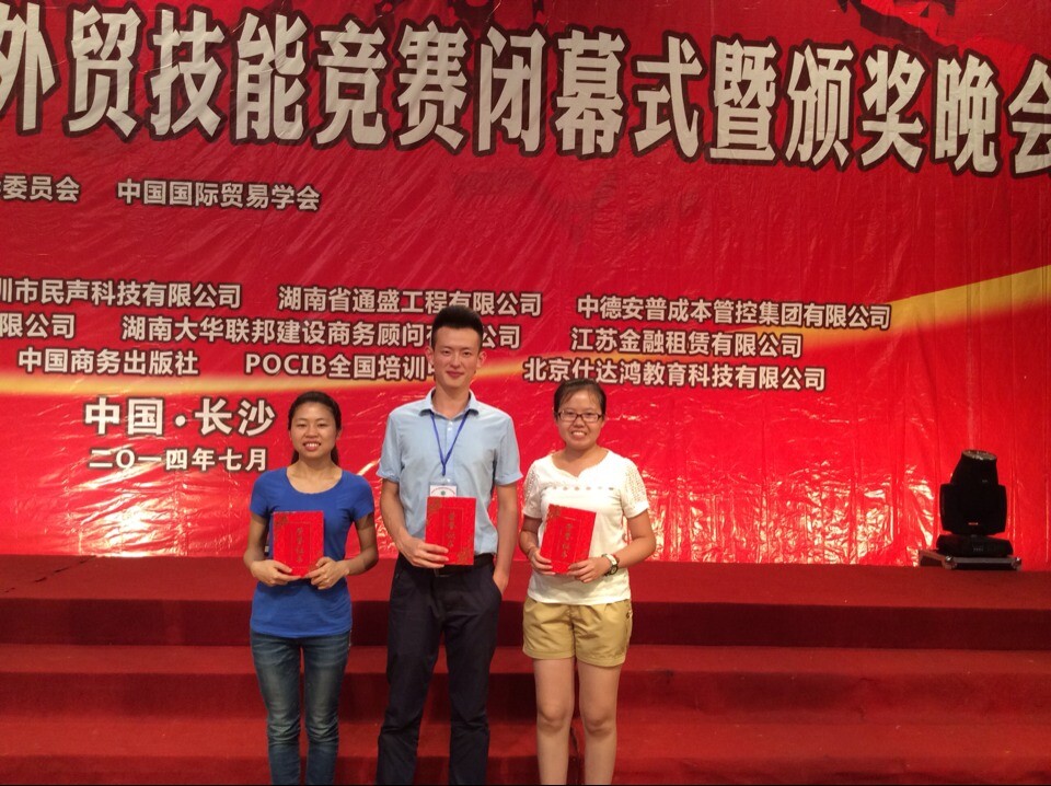 2014年7月16日,“东科杯”第七届全国职业院校外贸技能竞赛于2014年7月16日至20日在湖南长沙举行。来自海峡两岸96所本专科院校的代表队参加角逐,我校学子勇创佳绩,获得团体二等奖的好成绩。