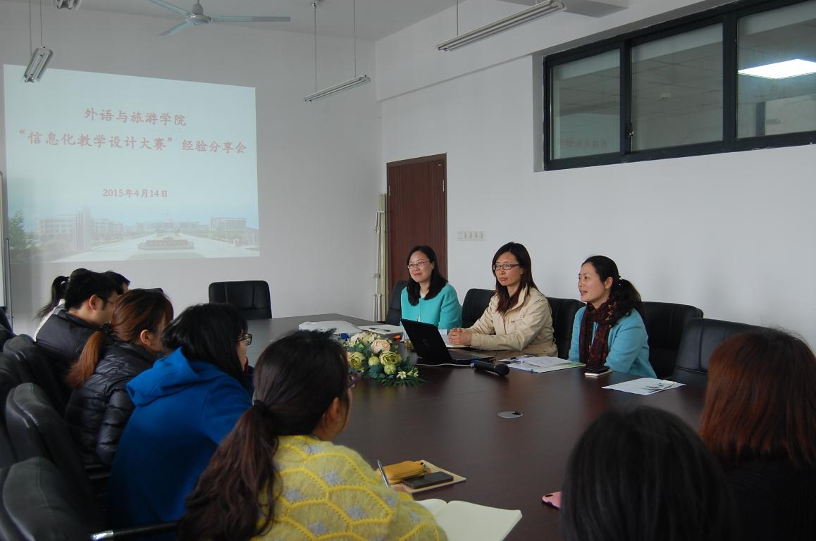 为进一步提高教师信息化教学技术与能力,2015年4月14日,外语与旅游学院在国际交流中心604举行了教师“信息化教学设计大赛经验分享会”。