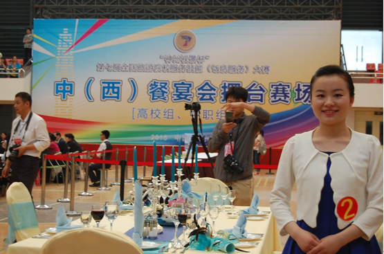 5月5日-8日,我院旅游系陈颖和叶业两位老师带领12级酒店管理专业郑晓春同学,参加了“神州视景杯”第七届全国旅游院校服务技能大赛,经过紧张而激烈的角逐,荣获高等院校组西餐宴会摆台三等奖,这是我校首次参加全国性的餐饮服务技能大赛。