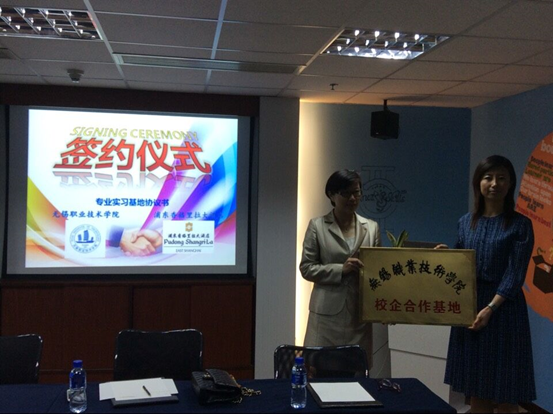 5月21日上午,我院与上海浦东香格里拉大酒店举行基地授牌及客座教授聘书颁发仪式。上海浦东香格里拉大酒店人力资源部总监杜晨、培训部总监Yuli Ong、人事经理郑慧、外语与旅游学院院长杨丽、旅游系副主任许刚、培训部主任助理叶业和我院实习生参加。