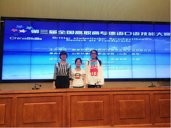 经过激烈角逐,我校外语与旅游学院周悦、孟蝶二位同学在精心准备的基础上,通过出色的现场发挥,最终喜获全国三等奖。另一位同学朱敏迪在比赛中也展现了自己优秀的德语技能,获得全国优胜奖。(撰稿、摄影:黄雪琴)