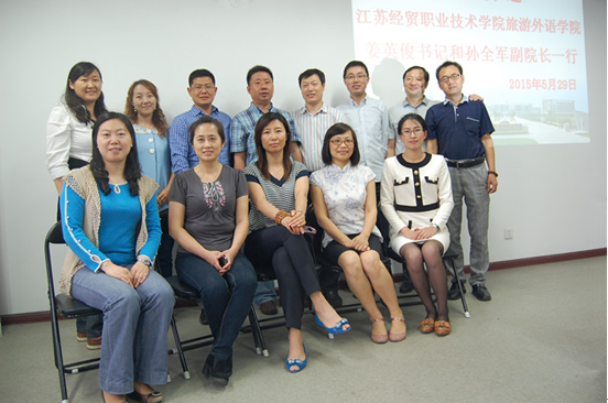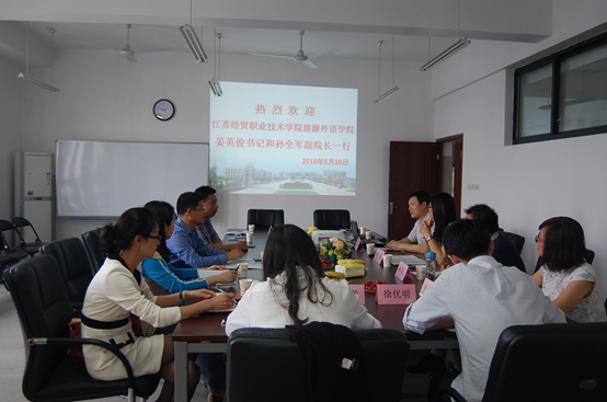 5月29日,江苏经贸职业技术学院旅游外语学院姜英俊书记、孙全军副院长一行七人前来我院进行考察交流,外语与旅游学院书记王占东、院长杨丽和各有关系、部负责人参加了交流会。