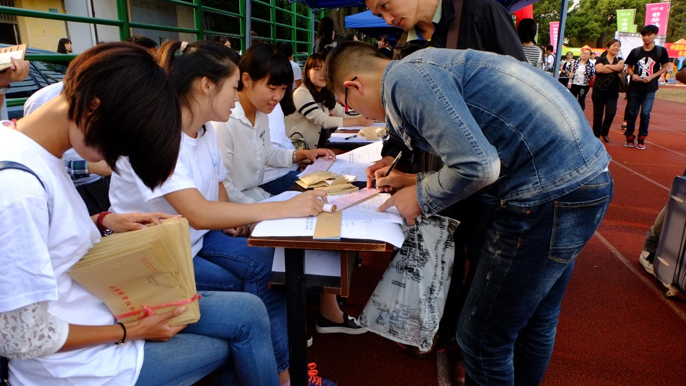 下午5点,在全院师生的共同努力之下,迎新工作顺利落下帷幕。据统计,2015年外语与旅游学院报到新生375人,报到率高达94%。新鲜的血液给外语与旅游学院注入朝气蓬勃的青春和活力,新鲜的笑脸也预示着外语与旅游学院未来的芳香桃李和累累硕果。外语与旅游学院衷心祝愿2015级新生能珍惜大学美好时光,谱写大学华丽篇章,共同塑造个人、学院和学校的美好未来!(撰稿:赵癸萍,许一丹;摄影:周嫄,杨雨萌)