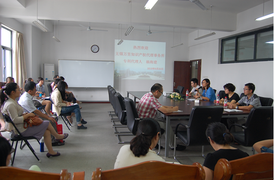 9月22日下午,外语与旅游学院杨丽院长联合校科技处在国际交流中心604为全院教师成功举办了专利知识讲座。讲座邀请了无锡万里知识产权代理事务所杨海建总经理为大家讲解了专利的相关知识。杨经理专业从事企事业单位知识产权代理服务,有着丰富的工作经验。