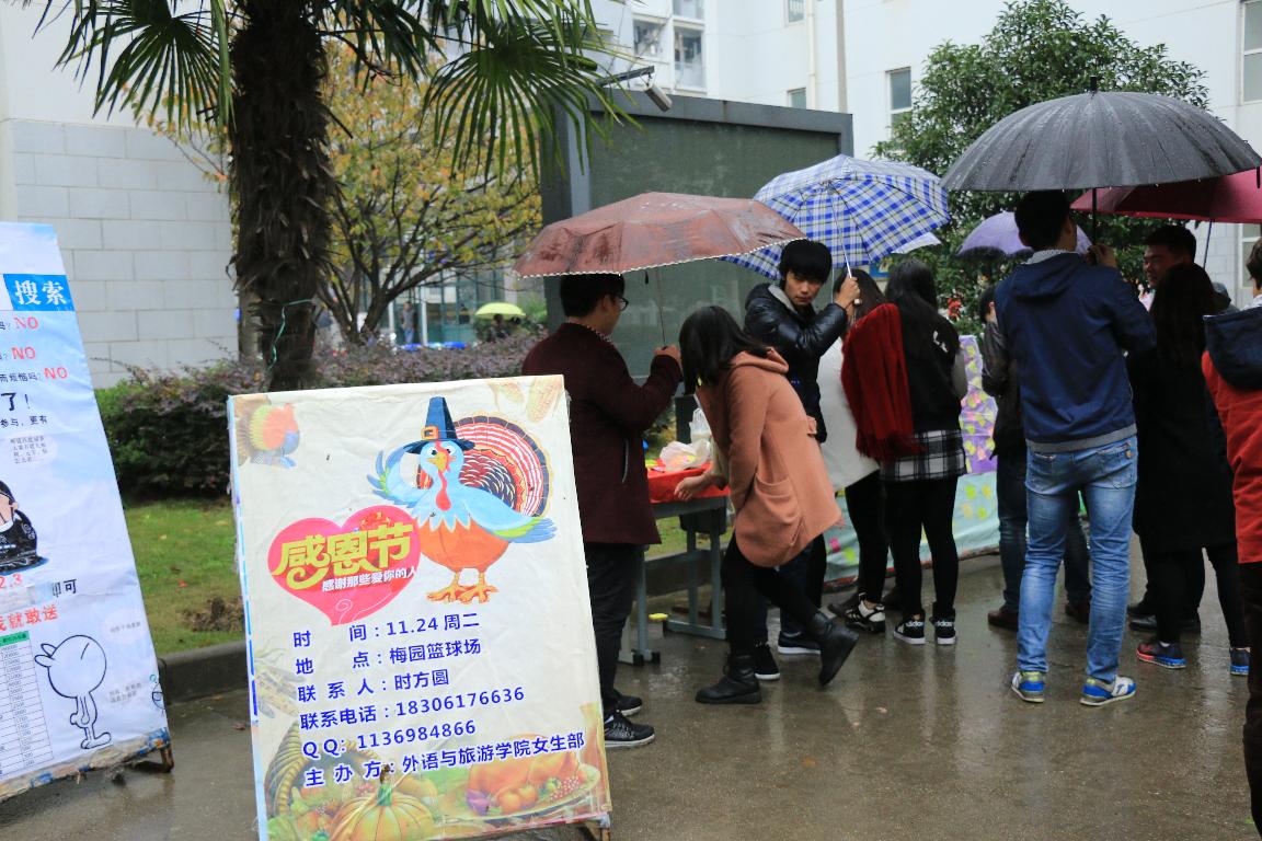 2015年12月24日中午,由外语与旅游学院学生会主办,女生部承办的一年一度的感恩节活动在梅园篮球场准时举行。此次感恩节是以个人填写小卡片的形式来表达自己对父母、亲人及朋友的感恩之情。活动之前我院女生部大力宣传,同学们对此次活动兴趣浓厚,也得到了同学们的大力支持。活动期间,虽然天空飘着丝丝细雨,空气氤氲着近日的潮气,但丝毫没有影响同学们的热情。大家纷纷提笔,将平日难以言表的感恩之情呈现在感恩墙上,此次活动取得了圆满成功。