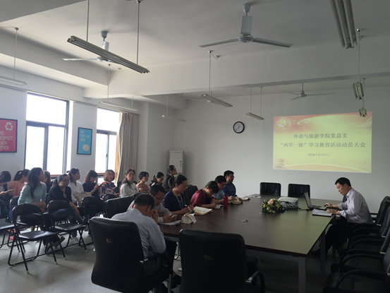 下午,外语与旅游学院党总支在学院会议室召开了“两学一做”学习教育动员会。动员会由学院党总支书记王占东主持,学院全体党员参加了会议。