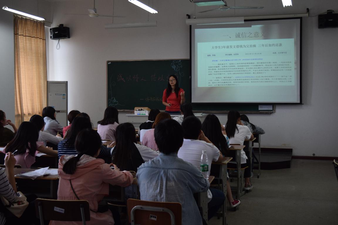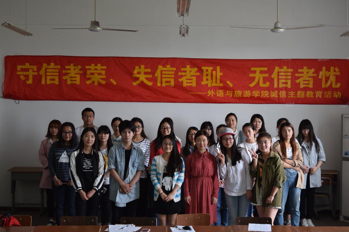 ,外语与旅游学院在国教409举办了“诚以待人,信以立身”诚信主题教育活动,辅导员赵癸萍老师担任了主讲人,外语与旅游学院团学干部、生源地助学贷款学生参加了此次活动。