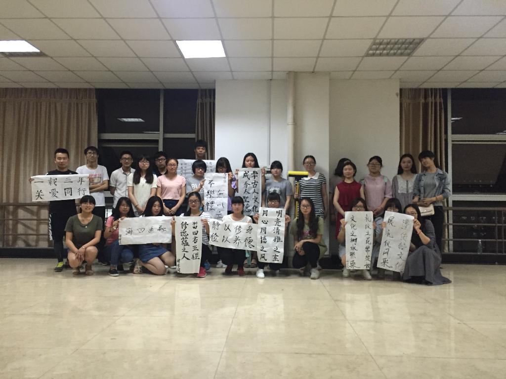 5月25日晚6点半,由外语与旅游学院商务日语61431班主办,女生部和心理部协办的主题为“弘扬传统文化,礼仪塑造文明”的标语创作书法大赛,在图书馆五楼蠡溪书画协会办公室举行。此次比赛邀请了机械技术学院学生会主席李伟,蠡溪书画协会会长李振全,以及我院学生干部陆一杰、林天涵、吴心原作为评委,商务日语61431班全体成员积极参加比赛。