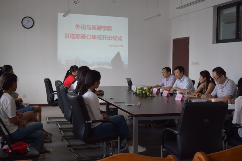 7月7日下午,上海贝塔斯曼商业服务有限公司与外语与旅游学院合作开办的订单班开班仪式在国际交流中心604会议室举行。上海贝塔斯曼商业服务有限公司人事经理张莹、外语与旅游学院总支书记王占东、院长助理梁峰、商务英语系主任李永田、辅导员赵癸萍老师及订单班指导老师和同学参加了此次开班仪式。开班仪式由院长助理梁峰主持。