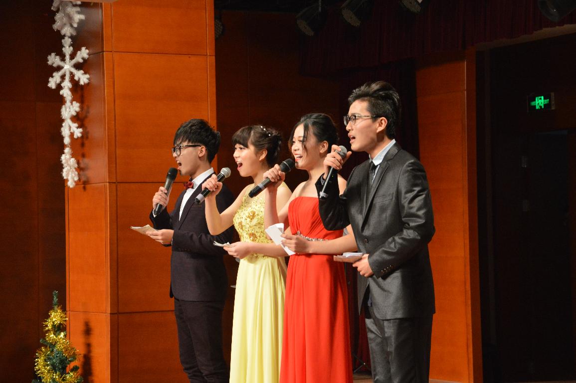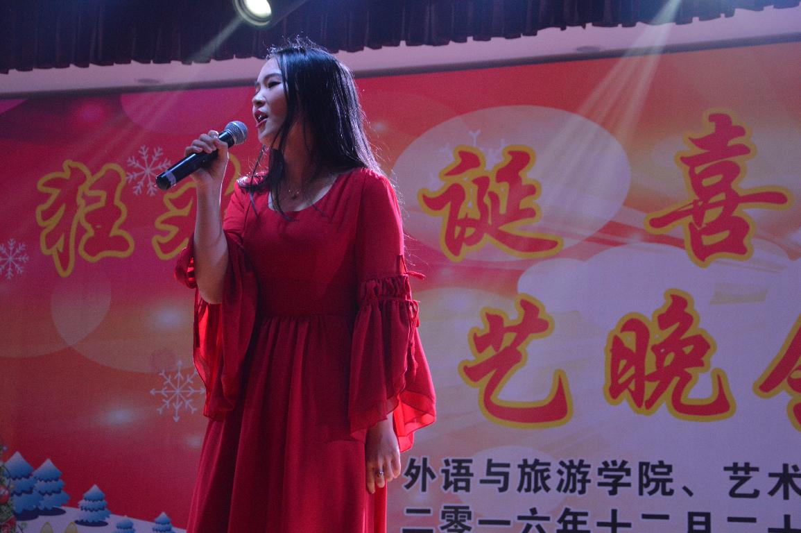 12月22日晚6点半,由外语与旅游学院、艺术与设计学院联合举办的“狂欢圣诞,喜迎新年”文艺晚会在青春剧场盛大开场。出席本次晚会的嘉宾有外语与旅游学院党支书记王占东老师,艺术与设计学院党总支部记刘文王老师,院团委副书记赵建老师、各兄弟学院分团委书记、学工办主任、辅导员、外语与旅游学院教师代表和留学生代表,600多名师生欢聚一堂,共享视听盛宴。