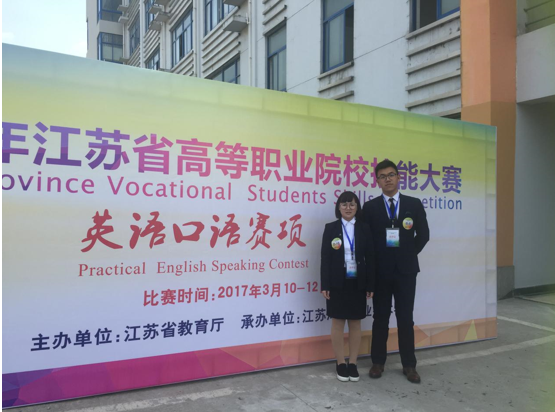 在2017年3月12日结束的江苏省高等职业院校技能大赛英语口语技能赛项中,商务英语61532班彭金花同学和物联网31432毛嘉良同学分别获得英语专业组二等奖和非英语专业组一等奖。