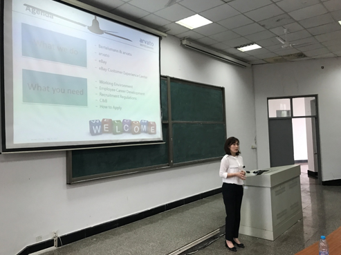 会上,eBay项目经理讲述了贝塔斯曼集团、欧唯特(中国)的基本情况及主要业务范围,重点介绍了eBay项目成员的工作职责、未来发展途径、工作环境、住宿条件及学生们普遍关心的薪酬待遇问题。我院14级实习生代表邓雪娇同学也在会上分享了在eBay的实习心得与体会。宣讲结束后,人力资源经理张莹就学生们提出的问题给予了充分解答。最后,与会学生参加了eBay项目组织的现场笔试。
