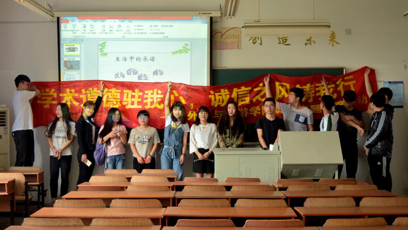6月6日下午2点,外语与旅游学院红十字会兼青年志愿者协会在教三202展开了“学术道德驻我心,诚信之风铸我行”的主题教育。此次活动旨在帮助同学们树立诚信的良好品质,在生活中坚持“诚信为本”,养成讲诚信的好习惯。