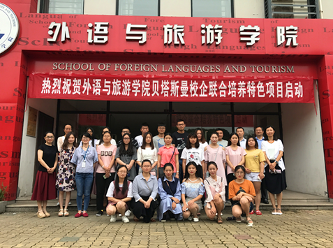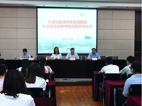 6月28日下午,我院贝塔斯曼校企联合培养特色项目开班仪式在国际交流中心二楼会议室举行。外语与旅游学院总支书记王占东、院长杨丽、上海贝塔斯曼商业服务有限公司人事代表唐依红、商务英语系主任李永田、法语教研室主任陈晓佳及项目指导老师和同学参加了此次开班仪式。开班仪式由杨丽院长主持。