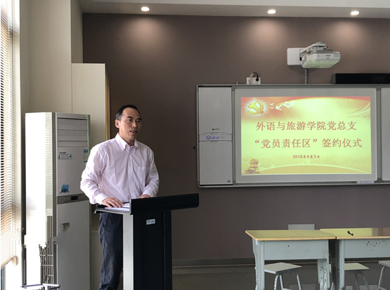 签约活动最后,党总支江铭书记讲话,强调了党员责任区活动的重要性和作用,并对责任区工作的开展提出了三点要求,希望全体党员一要提高认识,从思想上重视起来。二要努力工作,认真对照责任区任务要求开展工作。三要达到目标,真正取得工作实效,落到实处。